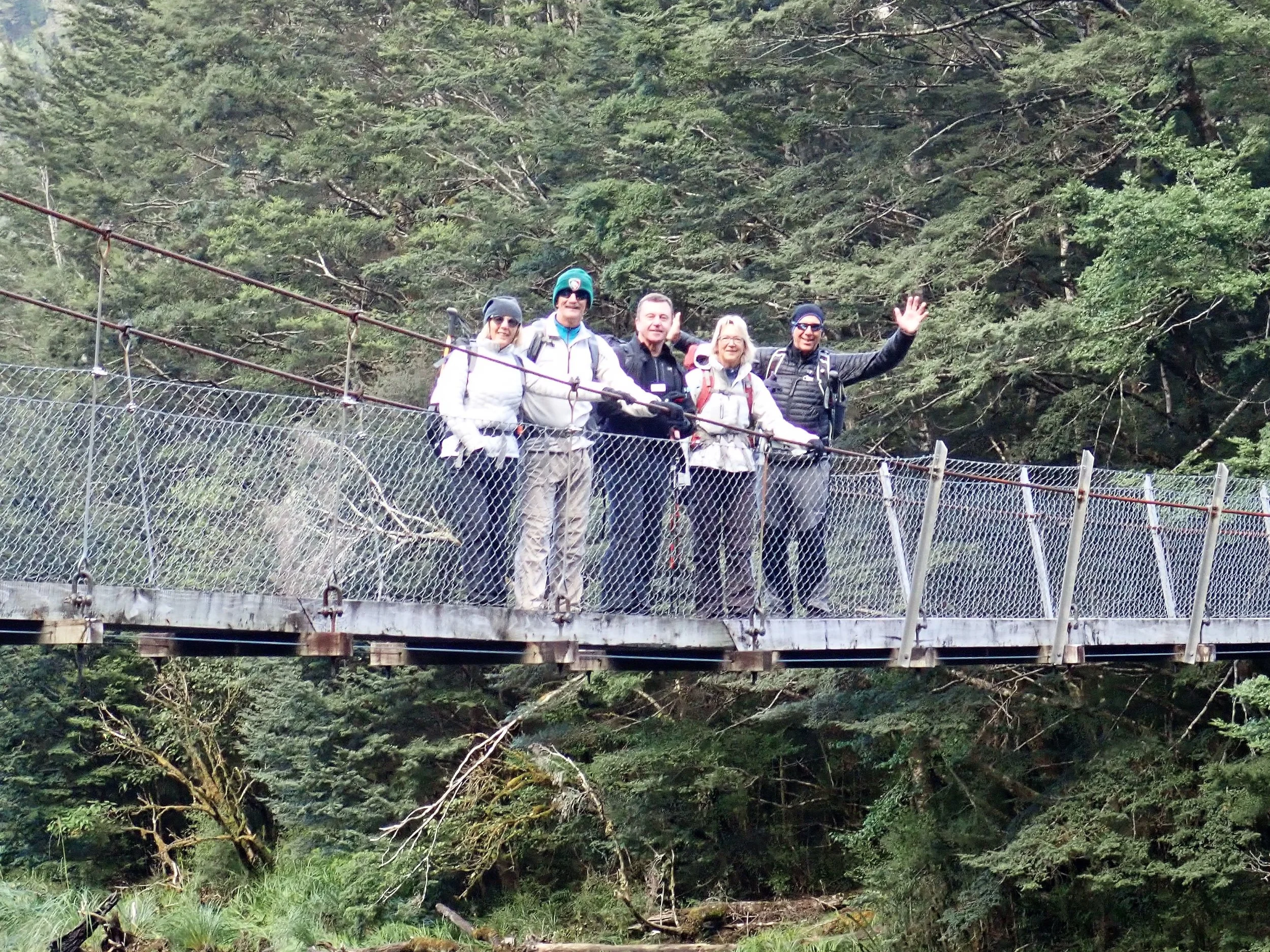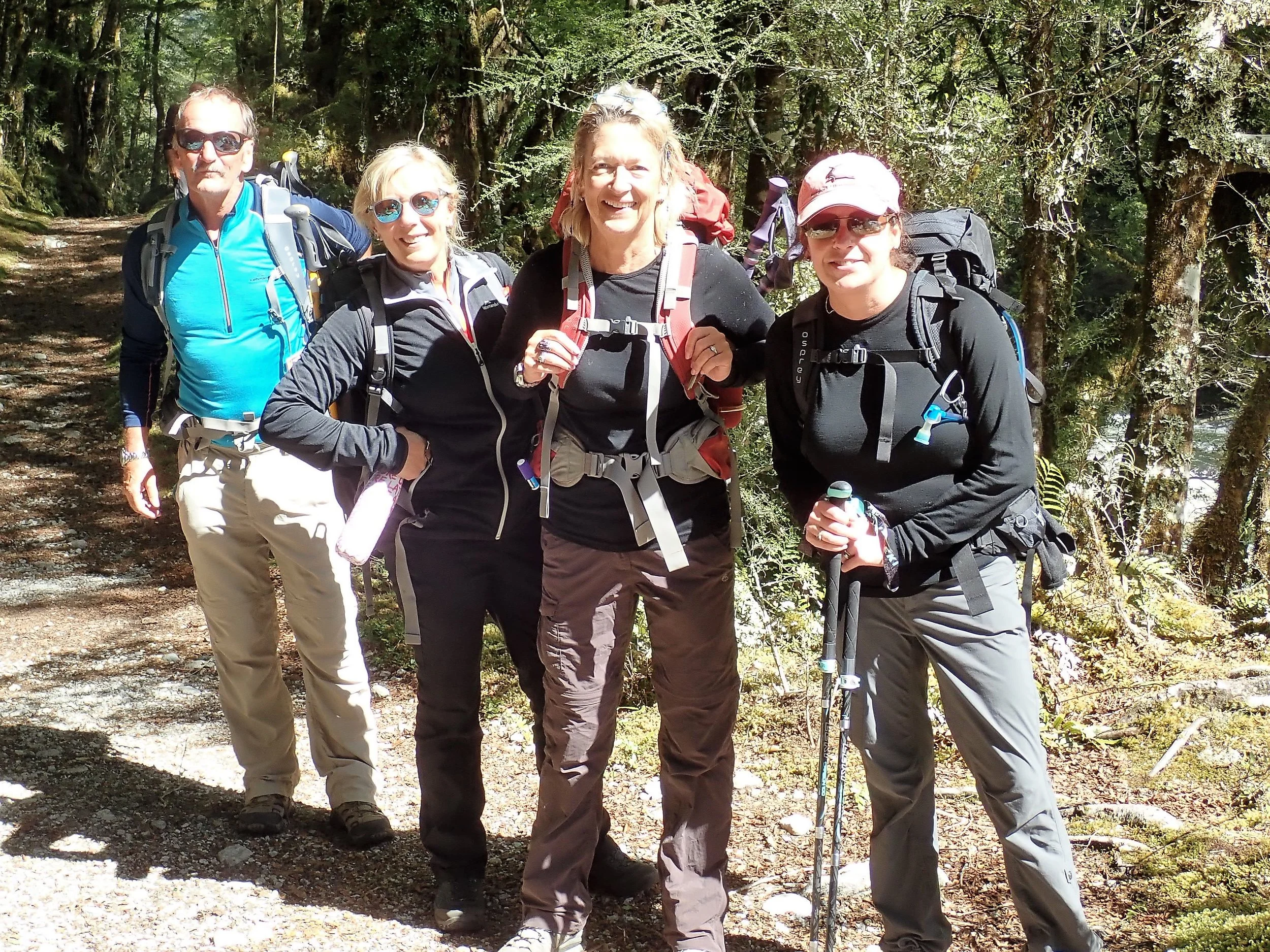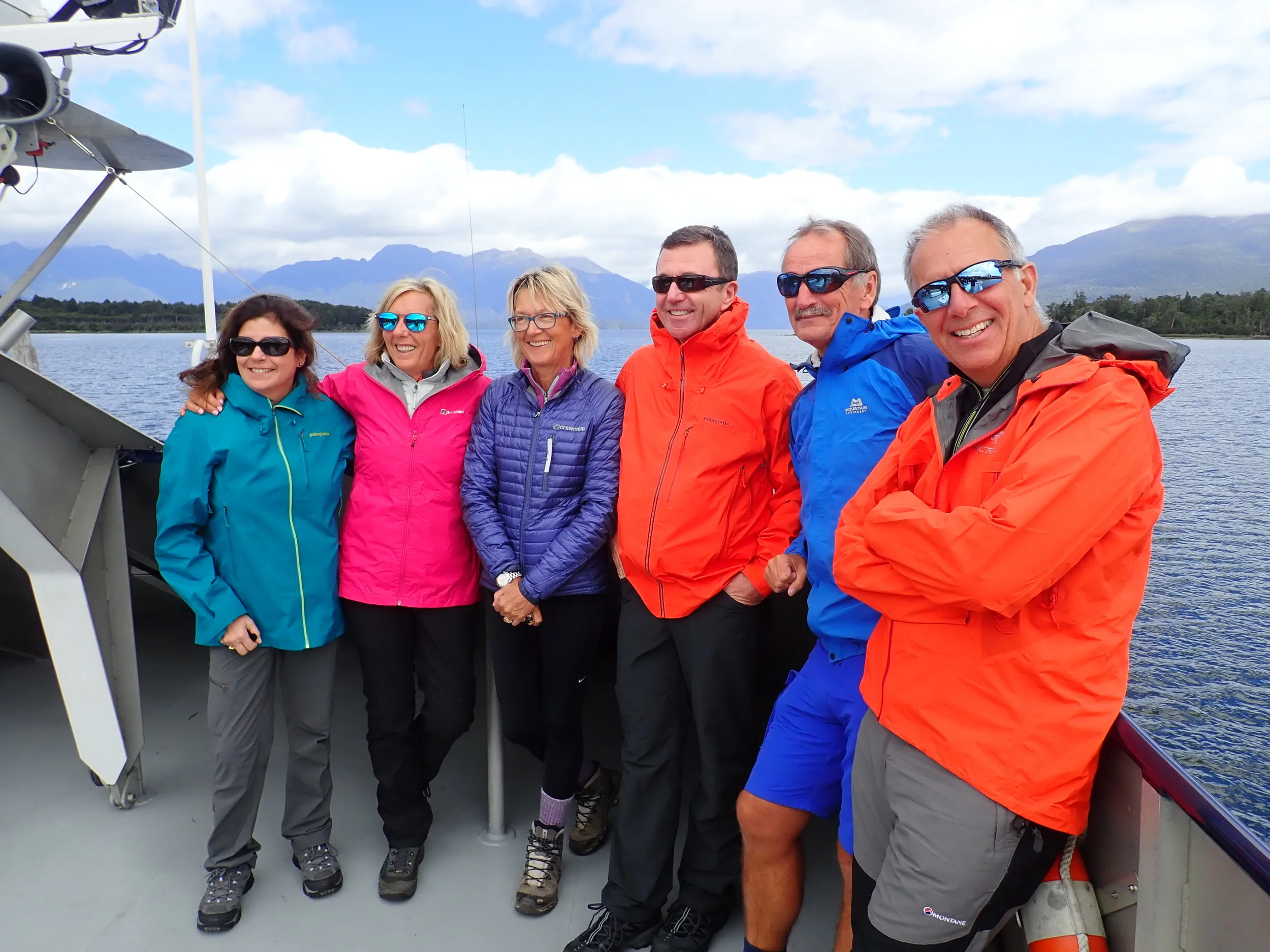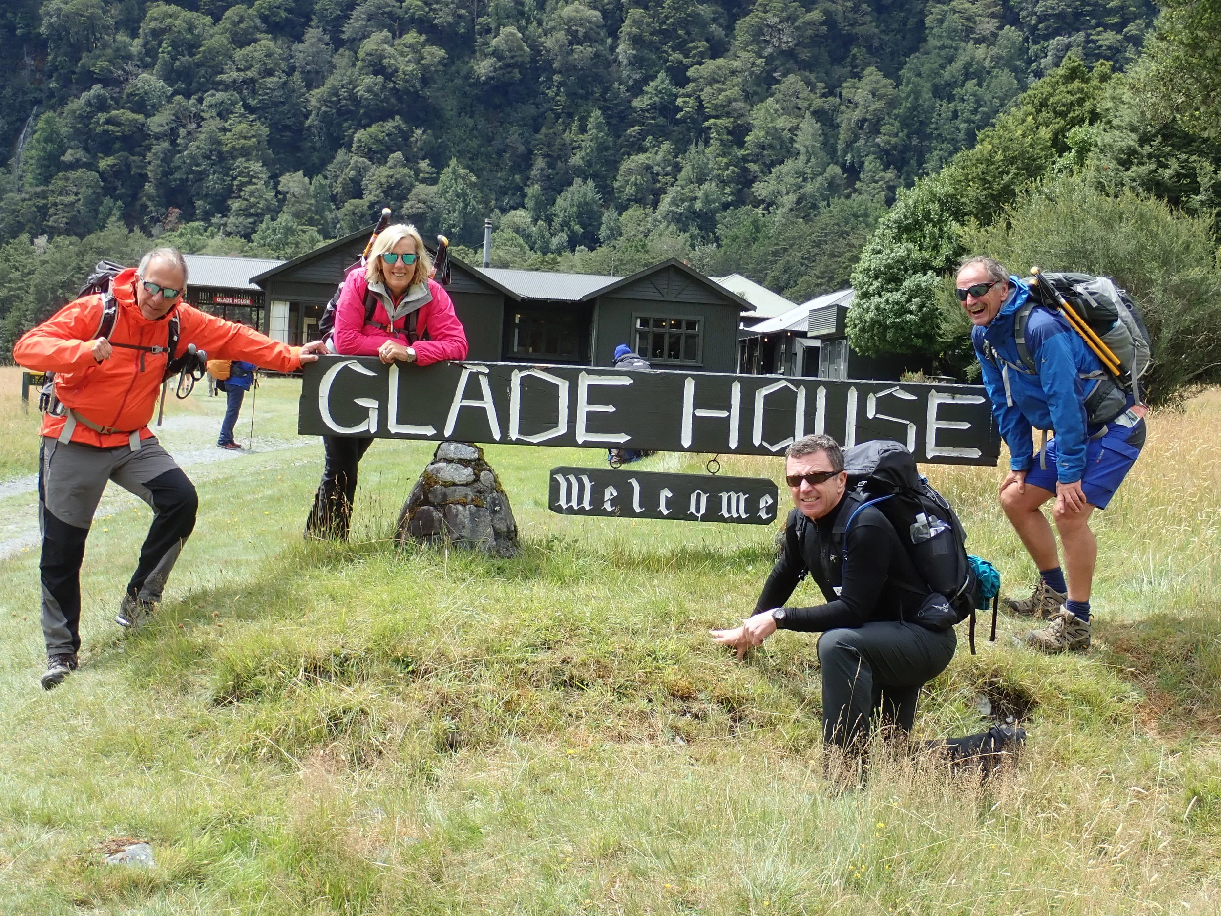 The next morning we met up with our friends from Meteorite; Debby, Janis, Andy and Hugh. No news from Tiggy and James, still stranded at Fox Glacier. Bus to Milford Sound, boat to head of Lake Te Anau, short walk to Glade House, our first lodge on the track. A short nature walk, cocktails and a great night’s sleep. Beautiful spot, wonderful food. Accommodations simple but great.